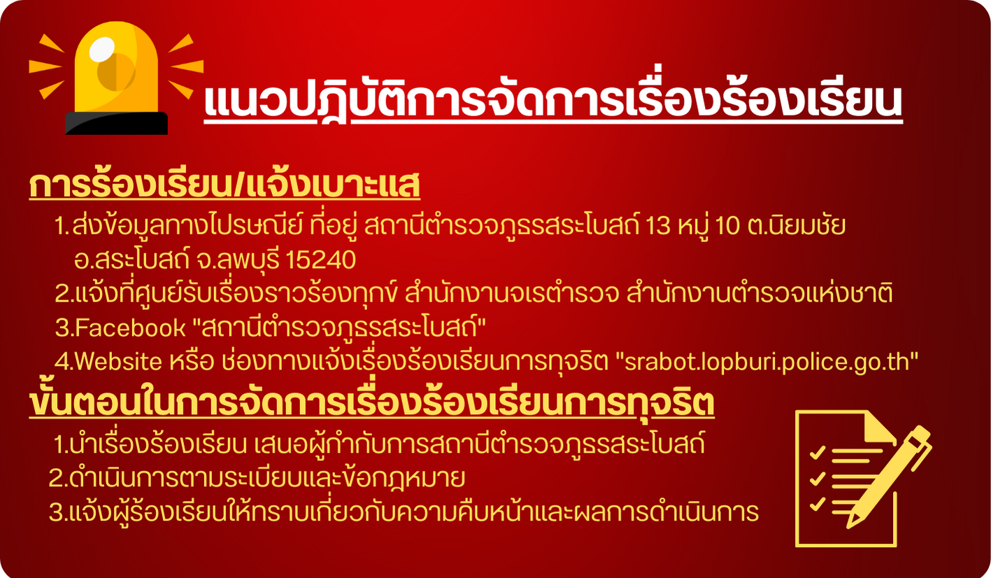 ข้อมูลสถิติเรื่องร้องเรียนการทุจริตและประพฤติมิชอบของเจ้าหน้าที่ของสถานีตำรวจภูธรสระโบสถ์